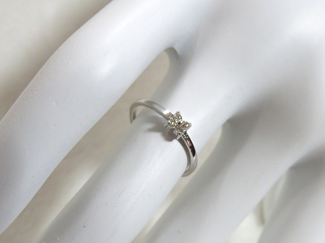お花モチーフダイヤモンドピアスを細リングにジュエリーリフォーム