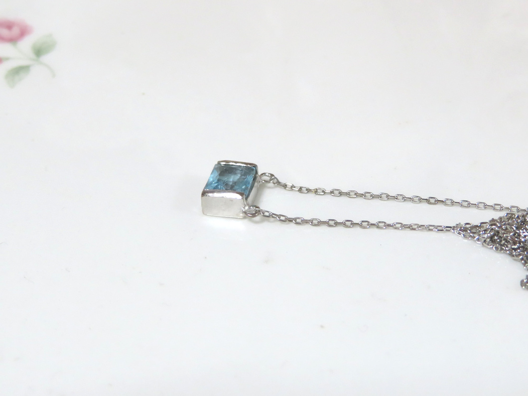 ブルートパーズのリングを2辺で留めた両引きデザインのペンダントにジュエリーリフォーム