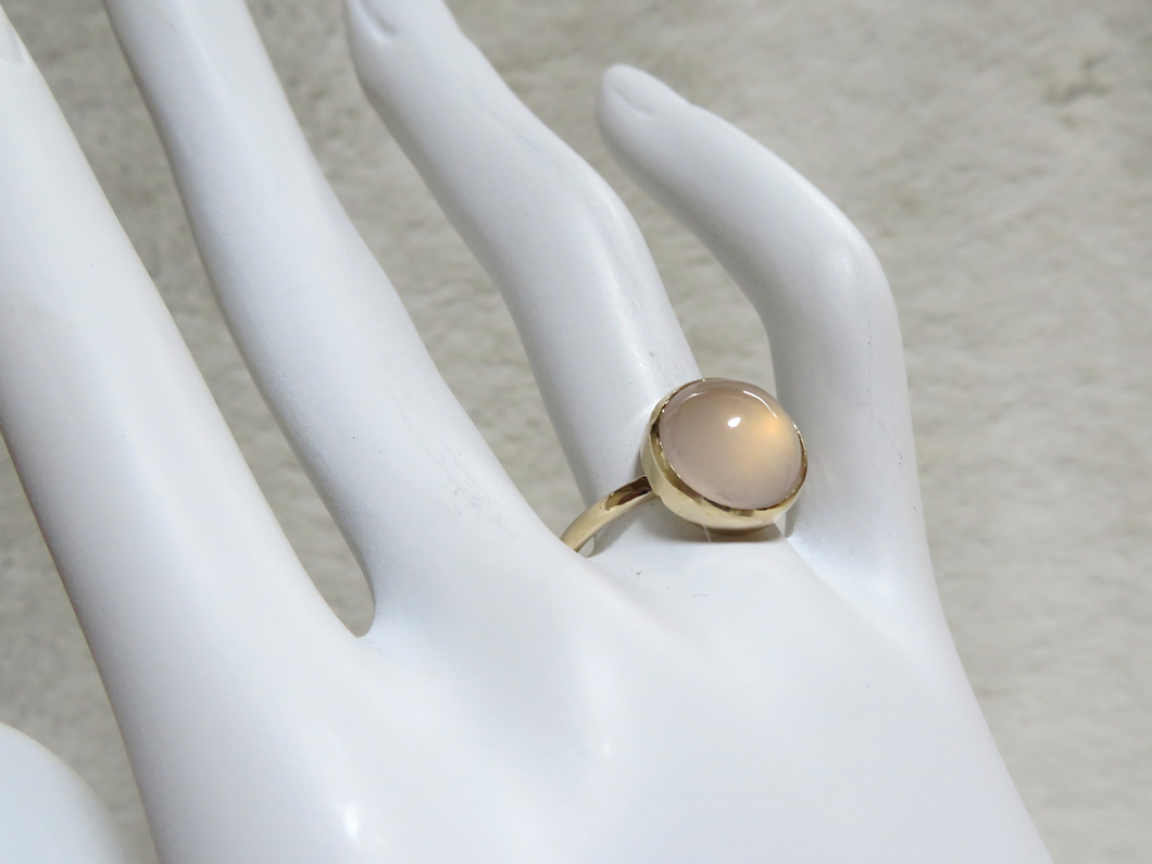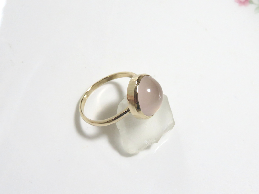 カボションカットの丸みの可愛さが生きるように、フクリンの高さを低くして丸いイメージに作りました。