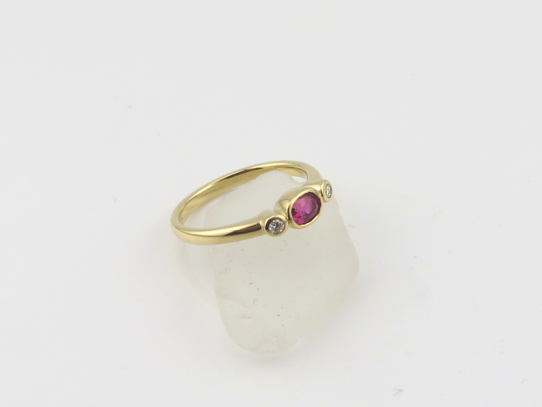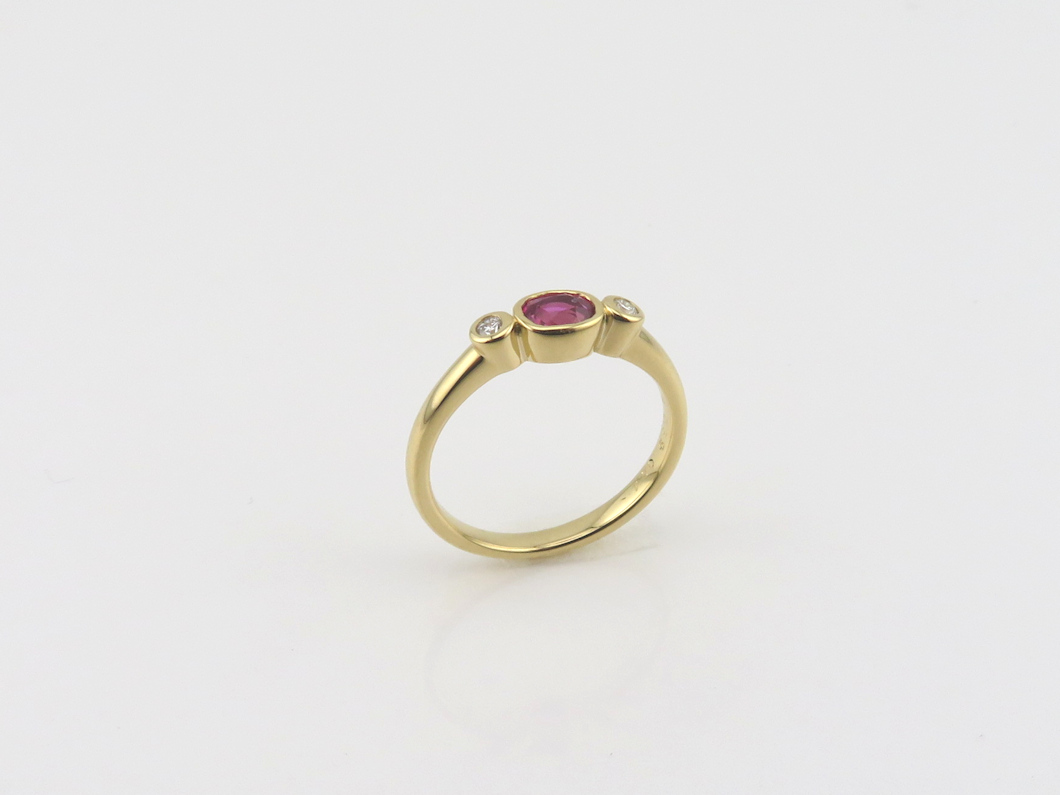 ルビーリングを、ルビーの両脇にメレダイヤを留めたフクリンタイプのリングにジュエリーリフォーム