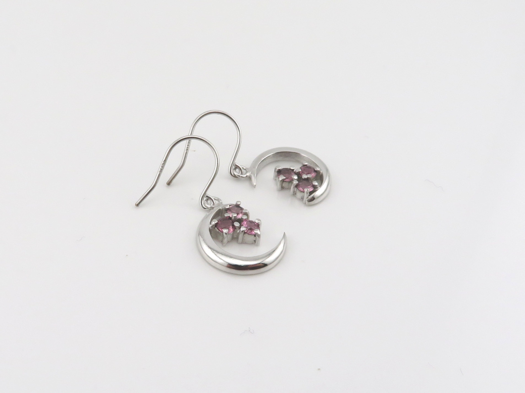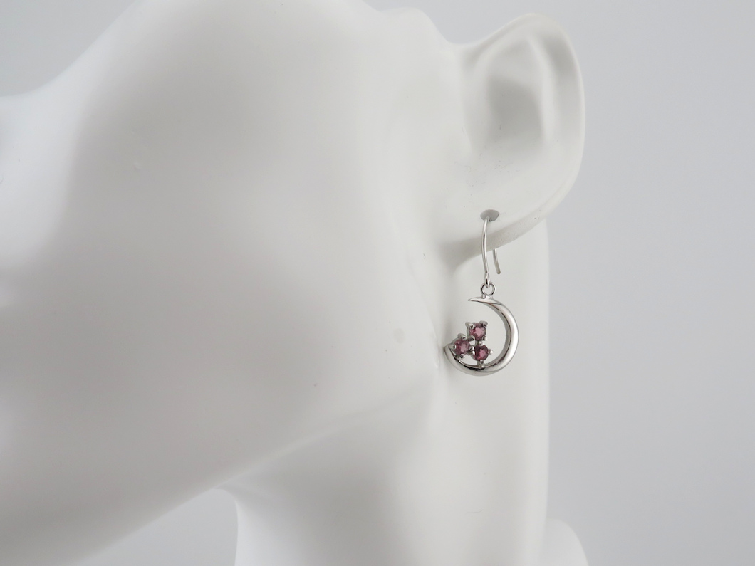 今回は、ルビーを使って、お月さまモチーフのピアスをお作りしました。お月さまのラインの内側にルビーを留めました。