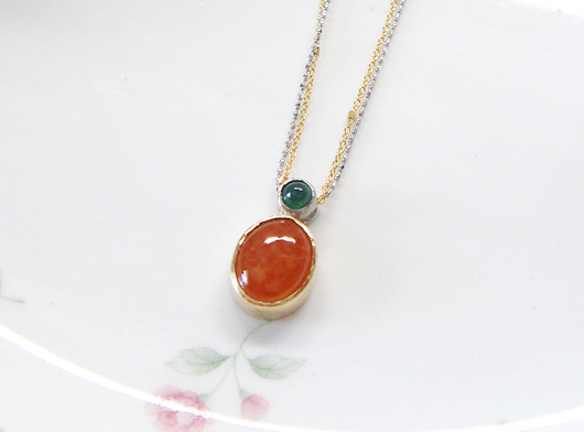 2石のヒスイのルースをペンダントに加工