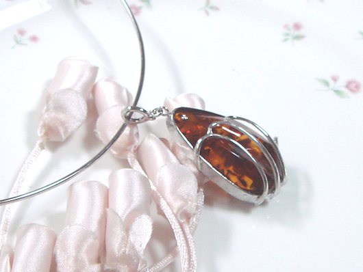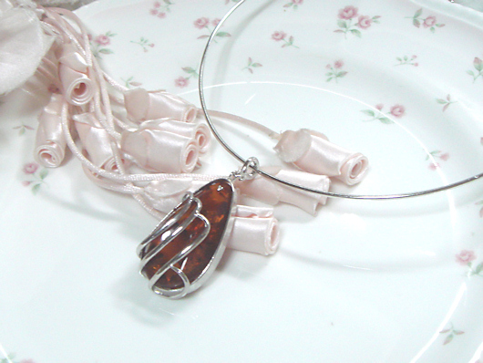 祖母からいただいた思い出の琥珀のペンダントがあります。このままでは少し寂しい感じがするので、デザインを考えて欲しい。