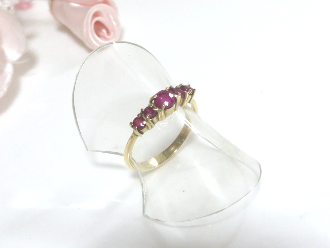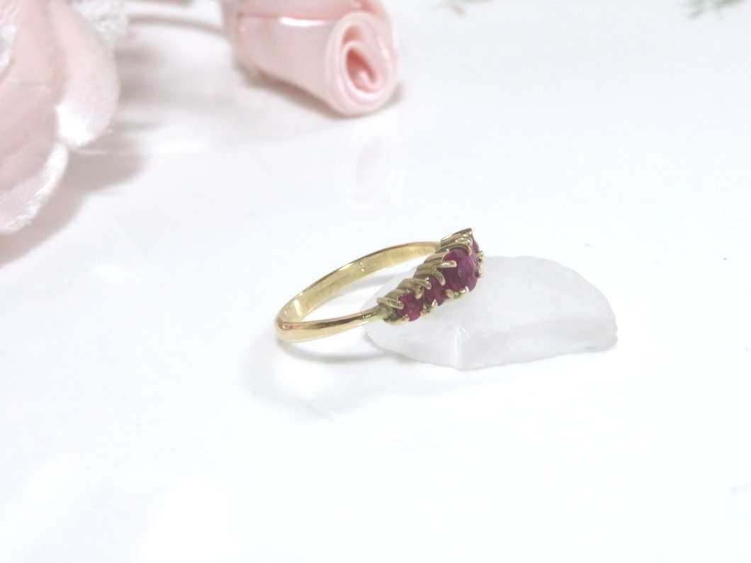 ペンダントのルビーの方が大きく、ピアスには一回り小さなルビーが4個留まっていました。合計5個のルビーで、とても上品でバランスの良いリングができあがりました。