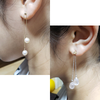 私のピアスの穴がまだしっかりしていないので、今回は娘に付けて貰っての撮影です。