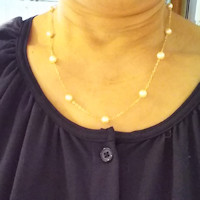 ネックレスはK18小豆チェーンイエローゴールドにて作成して戴いたので、経年劣化したパールの色が中和されたようです。